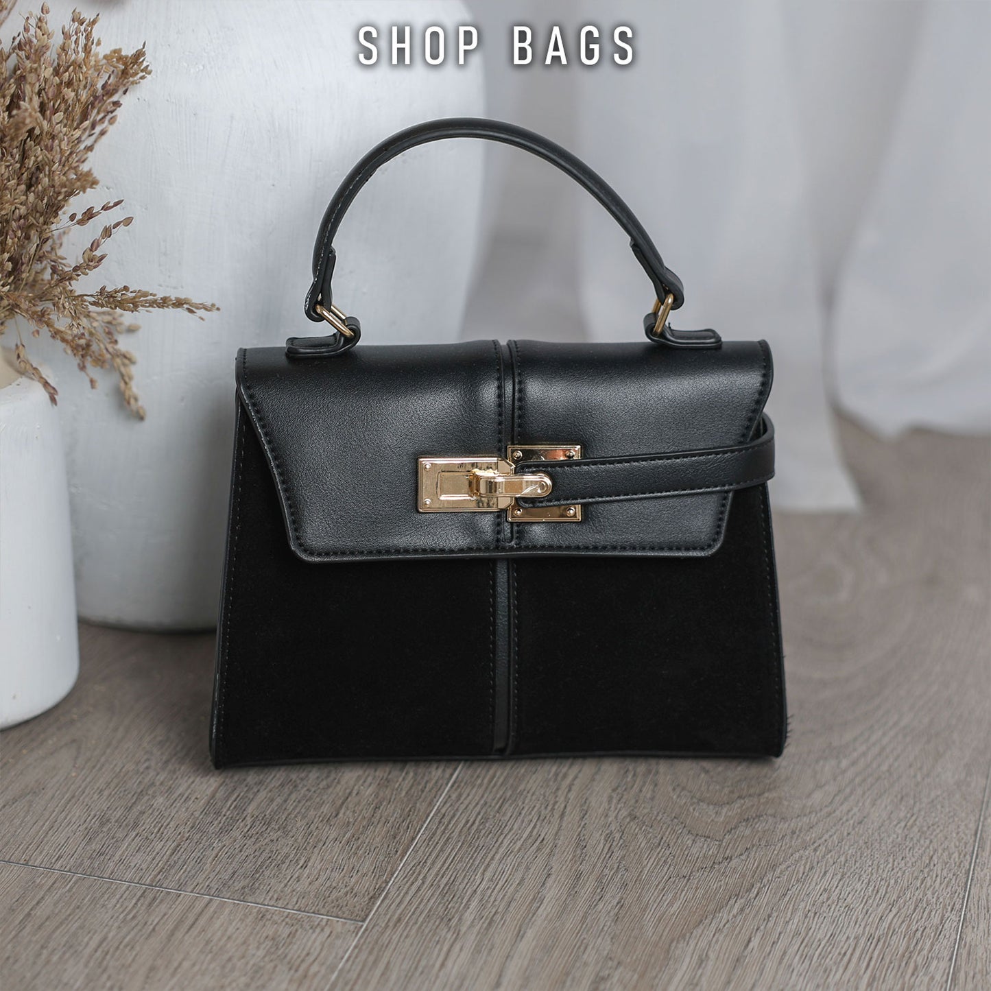 Black Faux Suede Fold Over Shark Knee-High Lock Buckle Boots