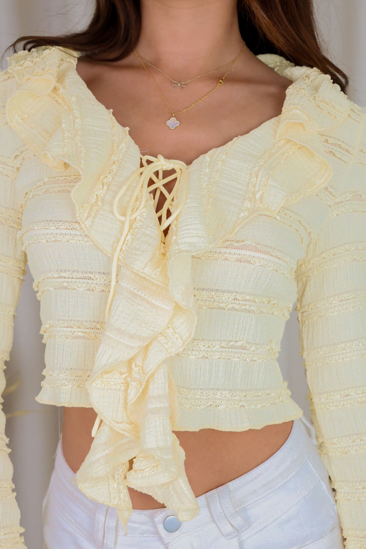 Regular price £15.00Elevate your style repertoire with this textured long bell sleeves top. The subtle texture of the fabric lends a refined touch, while delicate frill detailing adds a hint of considered femininity. This top offers versatile styling options.