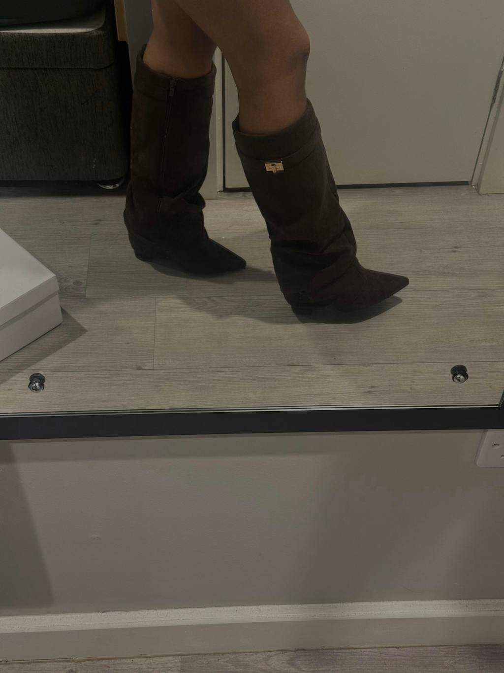 Regular price £34.99Step up your style game with this chic and sophisticated black slouchy fold over shark knee-high boot. Crafted from high-quality faux leather, this boot features a soft, matte finish with a gently ruched design that adds effortless elegance to any outfit. The pointed toe and low stacked heel offer both fashion and comfort, making it perfect for all-day wear. A sleek gold buckle detail at the top adds a touch of glam, elevating the overall look.