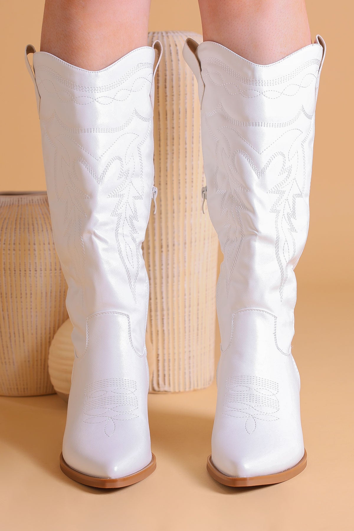 Step into effortless style with our Women’s Faux Leather White Embroidered Western Cowboy Boots. Blending traditional rugged charm with a clean, contemporary aesthetic, these boots are designed to be the focal point of any outfit.
