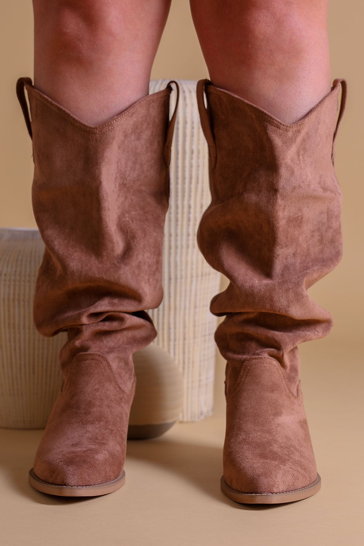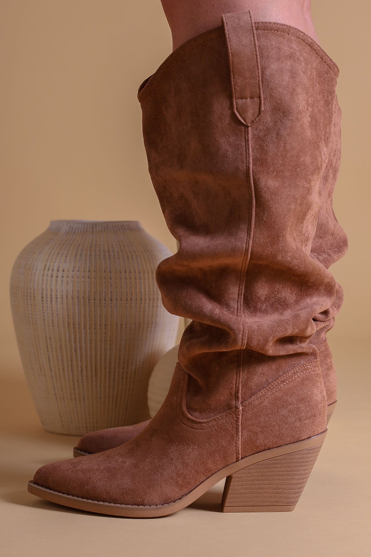Step into effortless style with our Women's Slouched Faux Suede Western Boots. Featuring a distinct rushed texture and a relaxed slouched silhouette, these boots perfectly blend rugged Americana with modern bohemian flair.
