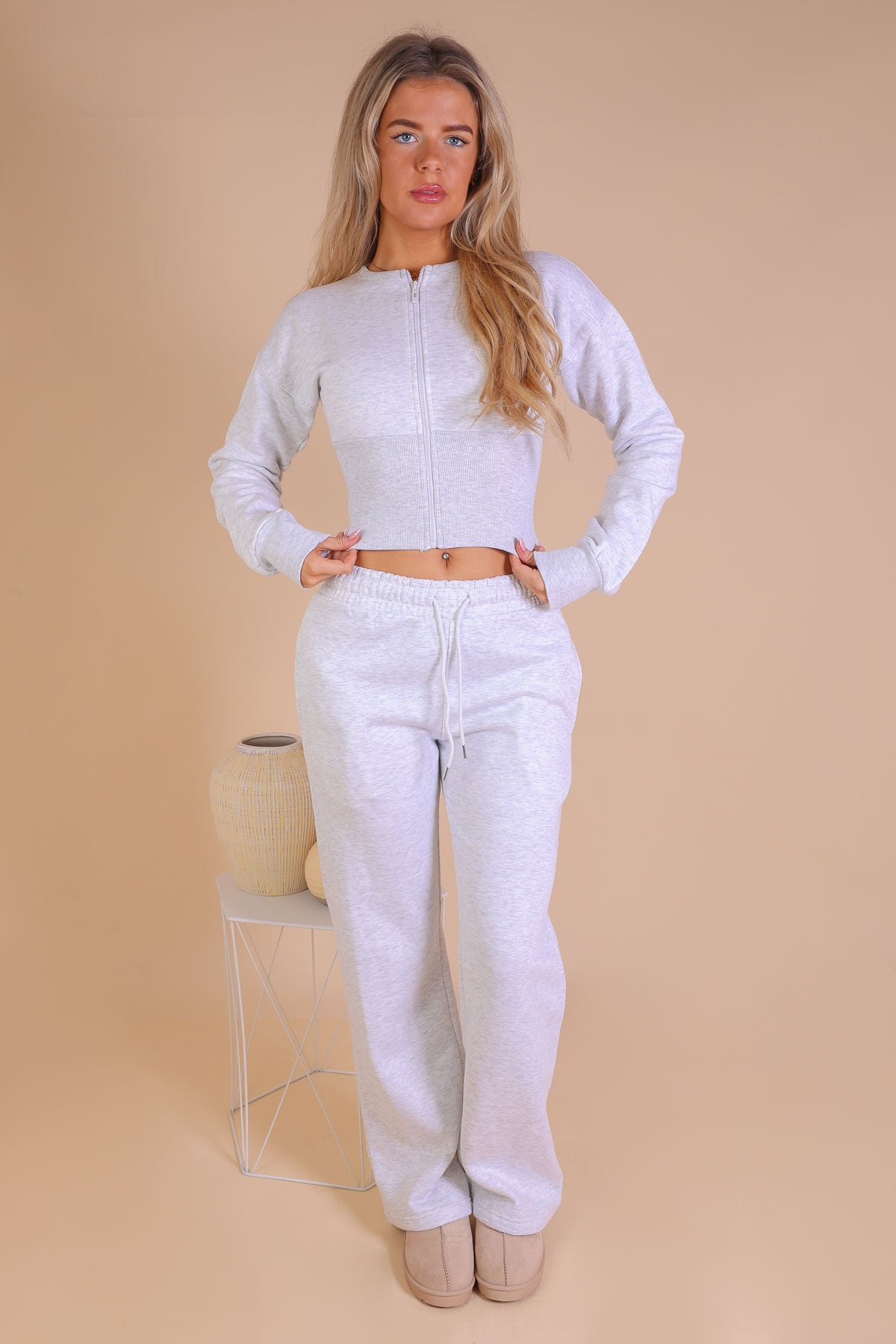 Stay comfy and stylish in our matching loungewear set! This fashionable tracksuit includes a zip-up sweatshirt with a flattering cinched compress waist and relaxed straight-leg joggers with a stretchy waistband. Ideal for relaxing in effortless style!